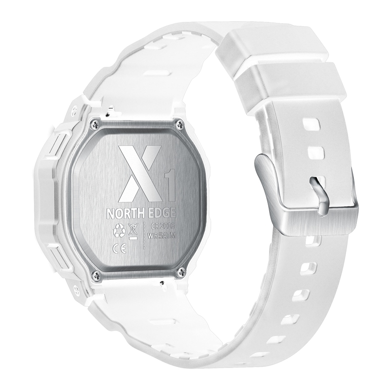 The North Edge X1 is a lightweight, shock-resistant outdoor watch built for fast movement and bold style. Its square dial and rugged case create a strong modern look, while practical functions—dual time, alarm, countdown, stopwatch, snooze, auto-calendar, and 12/24-hour format—support daily sport and travel needs. With 50m water resistance and three striking colors, the X1 delivers comfort, durability, and attitude in one sleek tactical design.