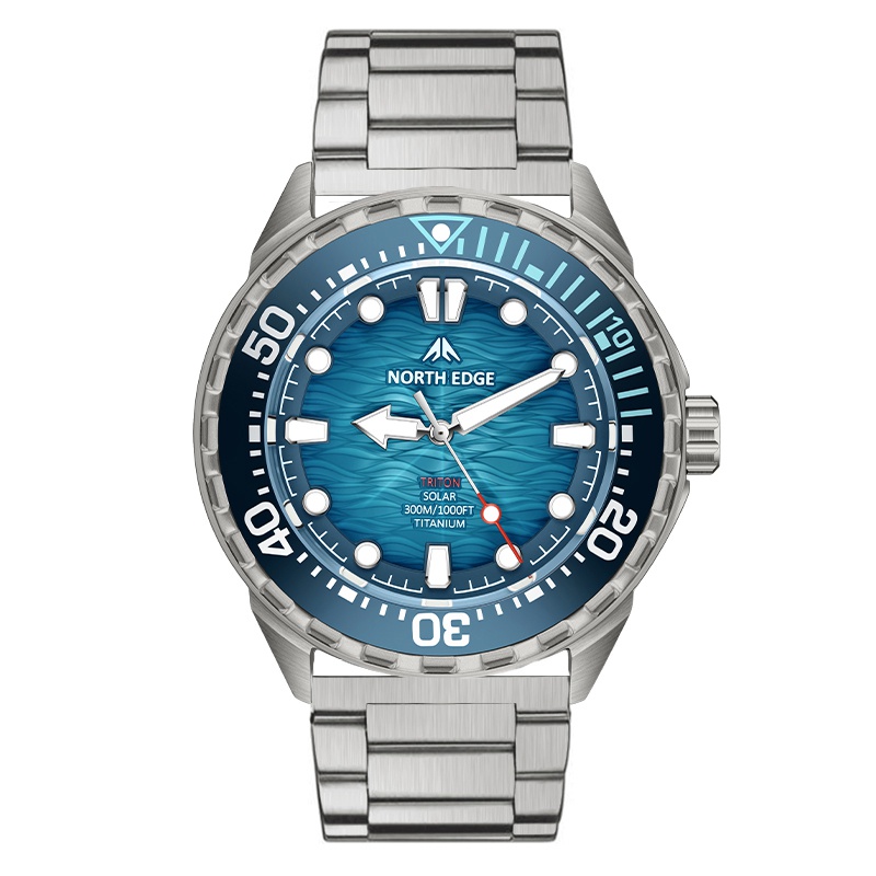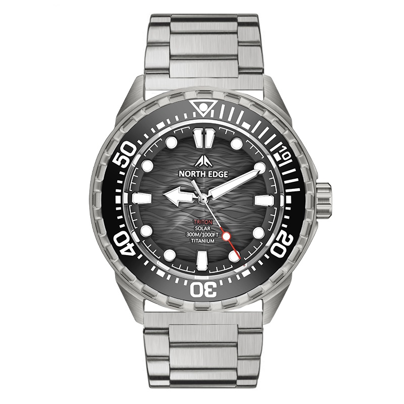 Presentamos el Triton-Ti: mejorado con una construcción ligera de titanio y energía solar para un funcionamiento de 180 días. Con resistencia al agua de 300 m, bisel de cerámica y marcadores luminosos, ofrece un rendimiento profesional para buceo en un reloj versátil y resistente a la corrosión.